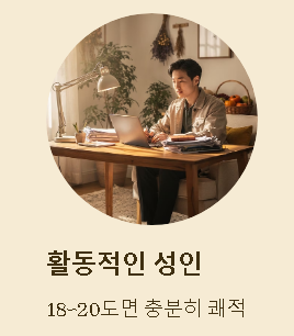 모든 사람이 같은 온도를 편안하게 느끼는 것은 아닙니다. 특히 영유아·노약자는 체온 조절 능력이 약하기 때문에 20~22도 정도로 조금 더 따뜻하게 유지하는 것이 안전합니다. 반대로 활동량이 많은 성인은 18~20도 범위에서도 실내복만 적당히 갖추면 충분히 따뜻하게 생활할 수 있습니다.