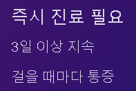 갑작스러운 심한 통증이나 다리를 전혀 움직일 수 없다면 응급실로, 서서히 악화되는 통증은 정형외과 예약 진료를 받으세요. 대학병원은 2-3주, 개인병원은 당일 진료가 가능합니다.
