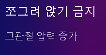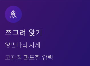 - 쪼그려 앉기나 양반다리 자세 - 고관절에 과도한 압력 가해짐